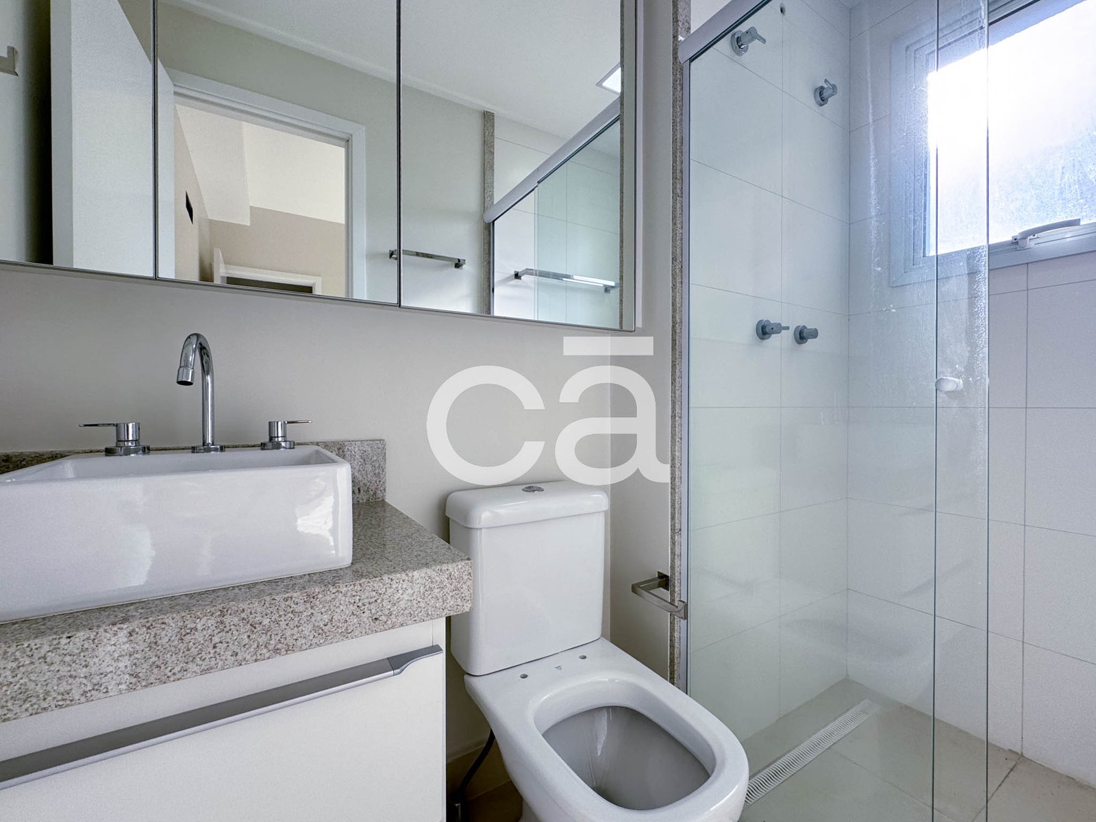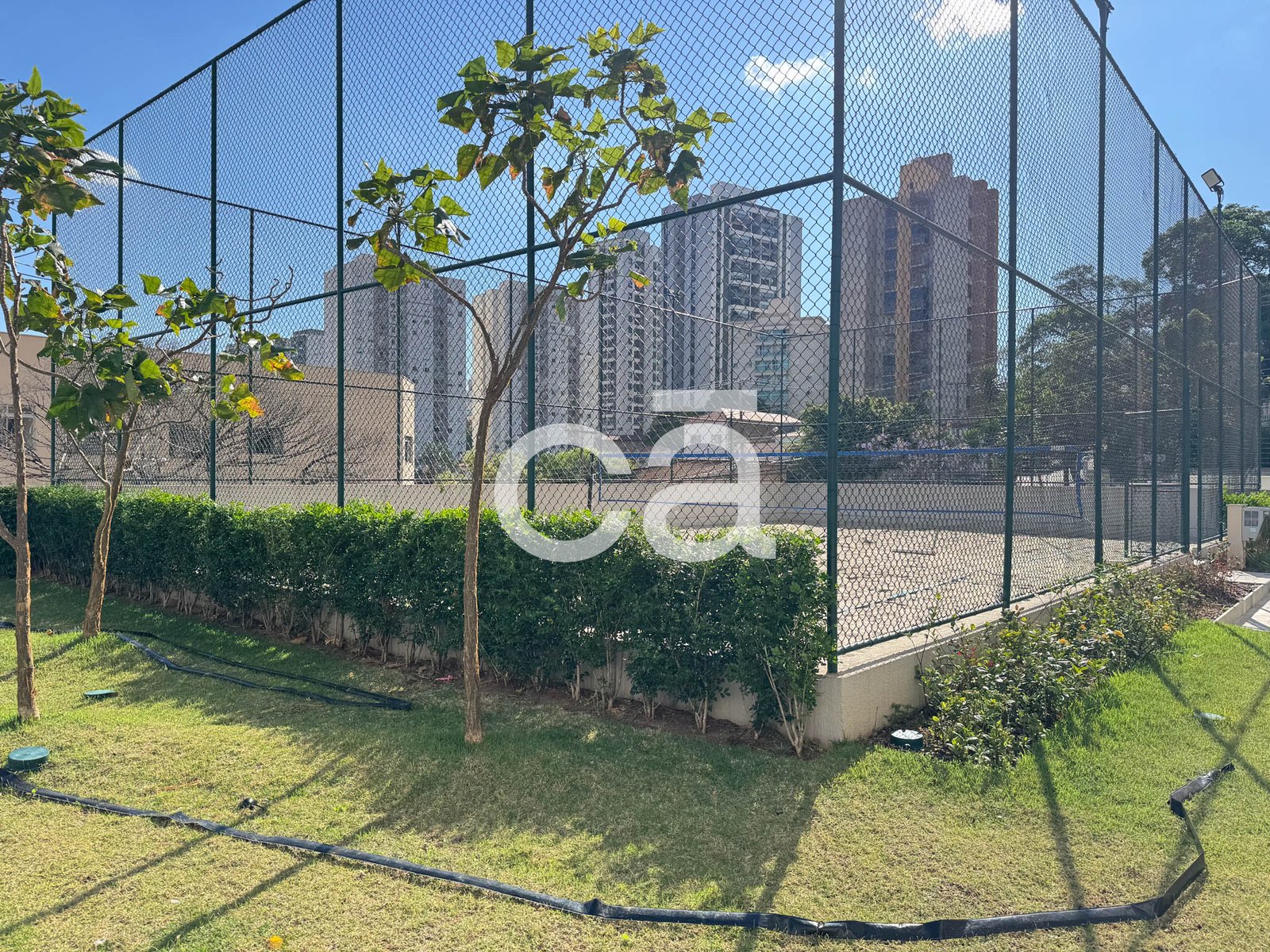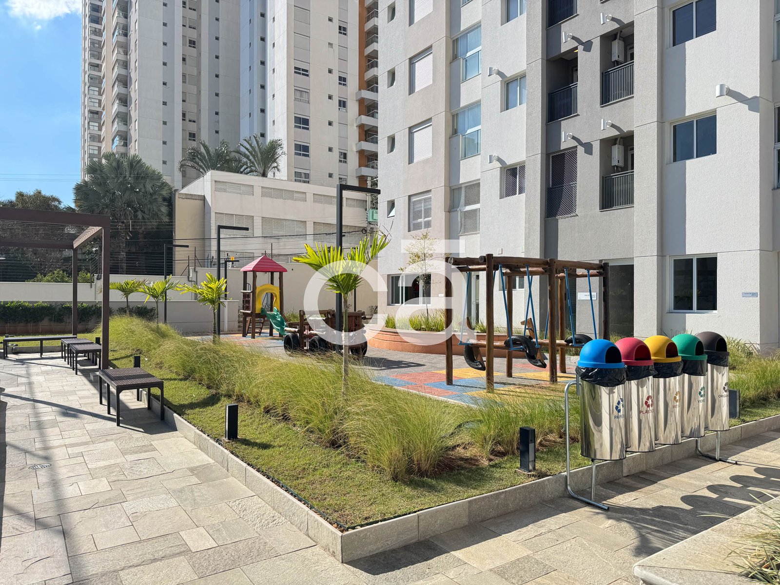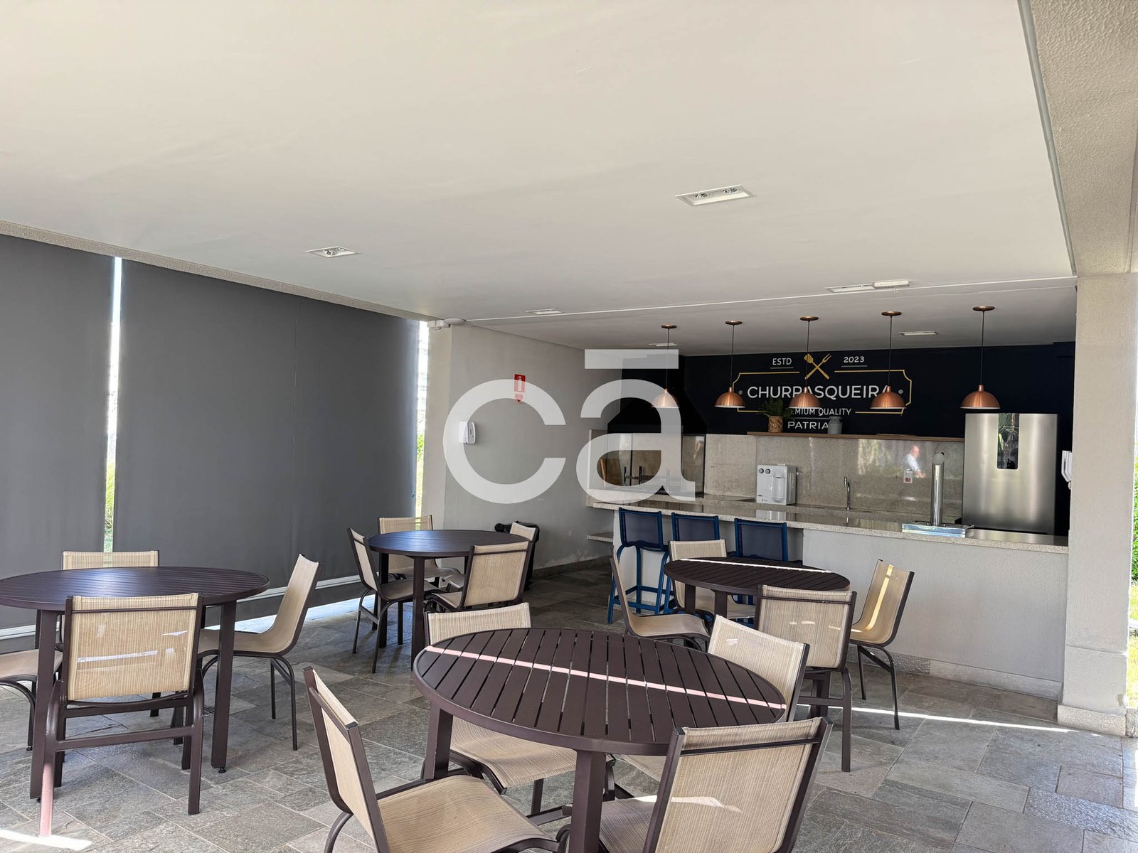 Condomínio com portaria 24 horas e área de lazer completa, com piscina, academia, quadras de beach tennis e poliesportiva, churrasqueira, espaço gourmet e mais.