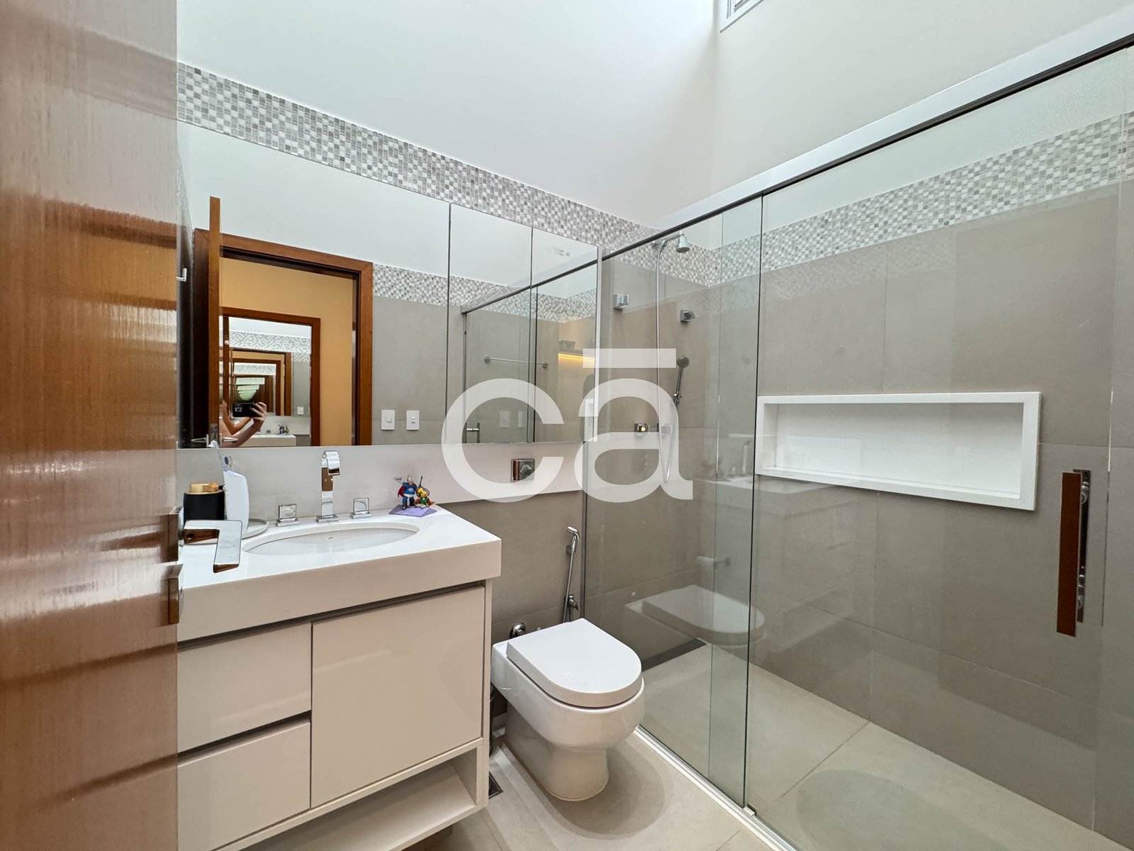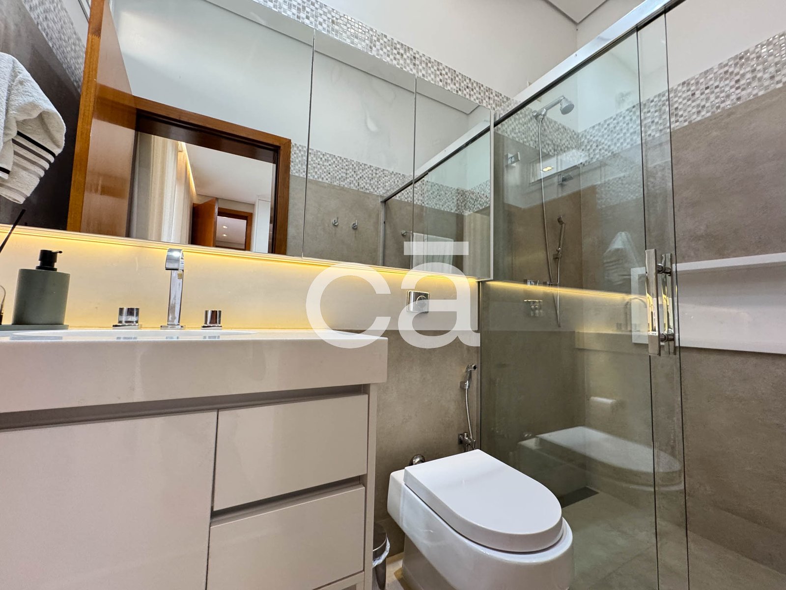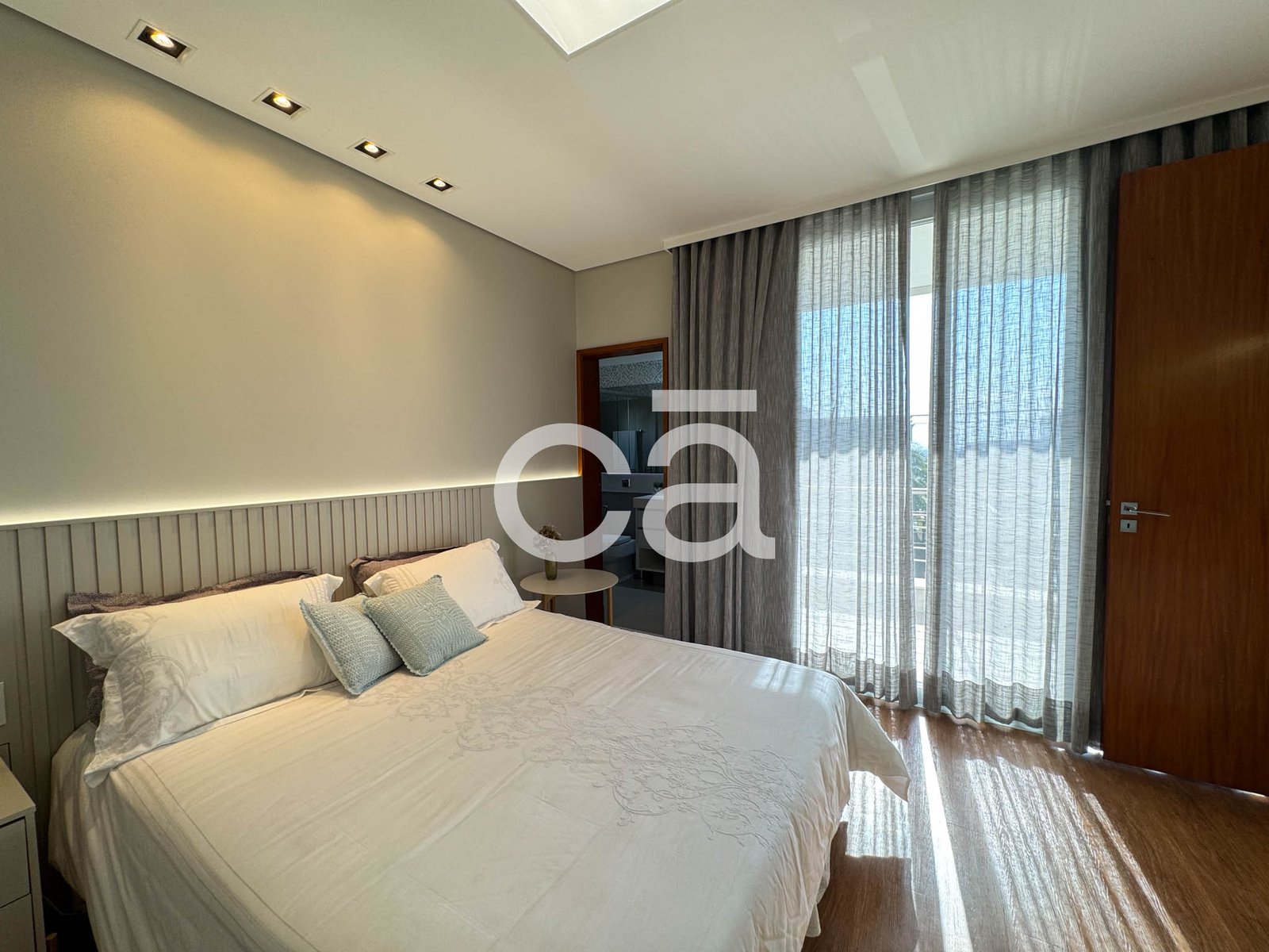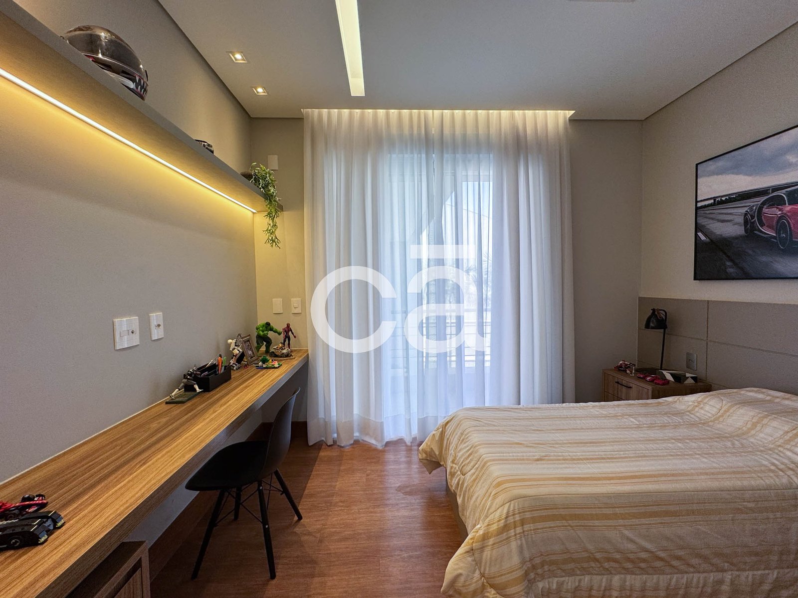Tem 4 suítes no andar superior, sala de TV e copa e lavanderia de apoio. A suíte master possui isolamento acústico e closet. No térreo possui um escritório que pode ser convertido em uma quinta suíte.